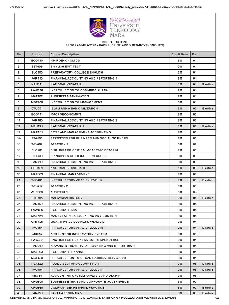 Study Plan Pdf Https Simsweb Uitm Edu My Sportal App Sportal Login Study Plan Cfm Id 30b3c88b Idx 3a58edfd Id2 6744 U00c2 U00c2 U00c2 Course Outline Programme Course Hero