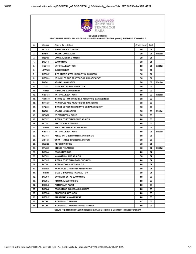 Study Plan Pdf Https Simsweb Uitm Edu My Sportal App Sportal Login Study Plan Cfm Id 2ccacf8d Idx 0b1f8094 Id2 6833 U00c2 U00c2 U00c2 Course Outline Programme Course Hero